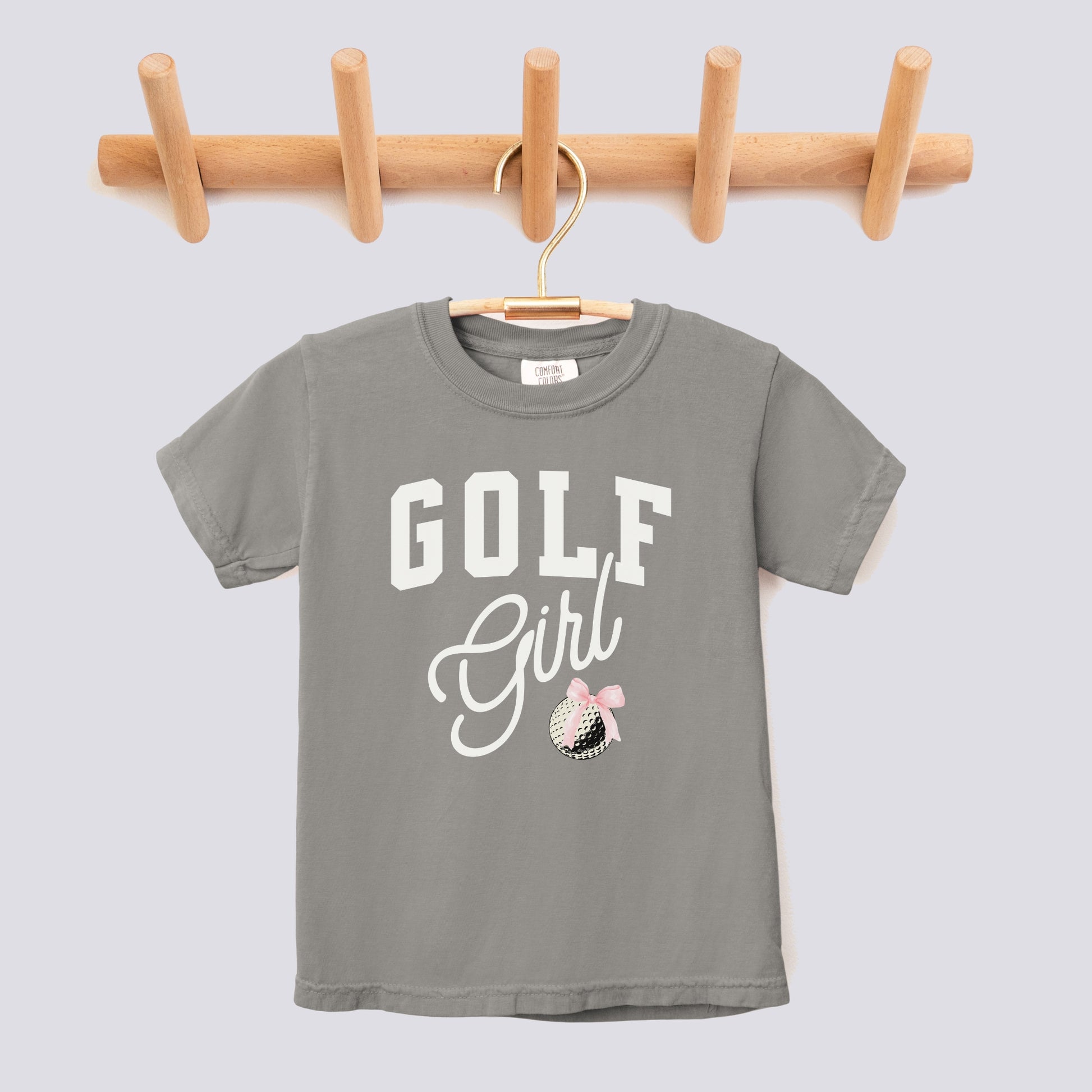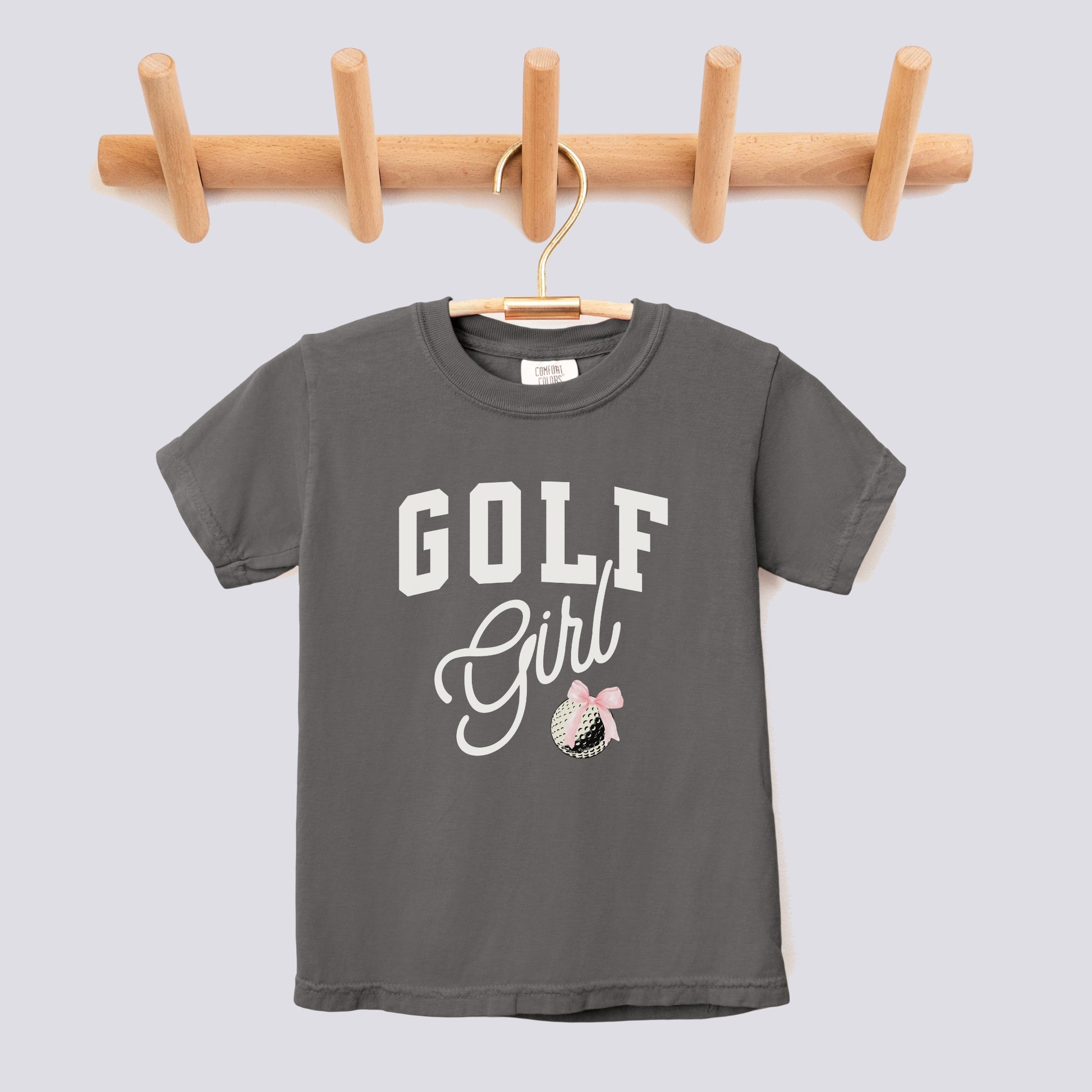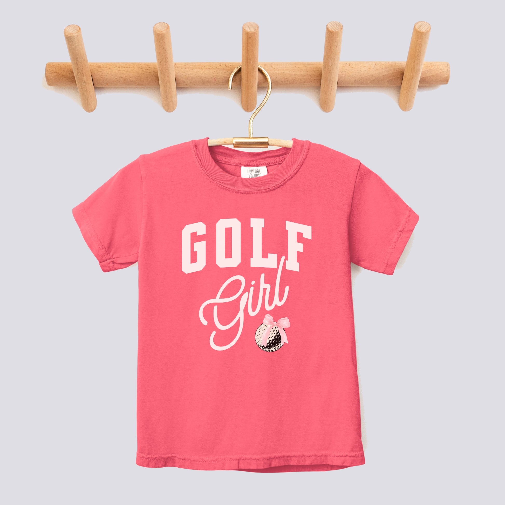 Retro Golf Girl Pink Bow Comfort Colors Youth Tee