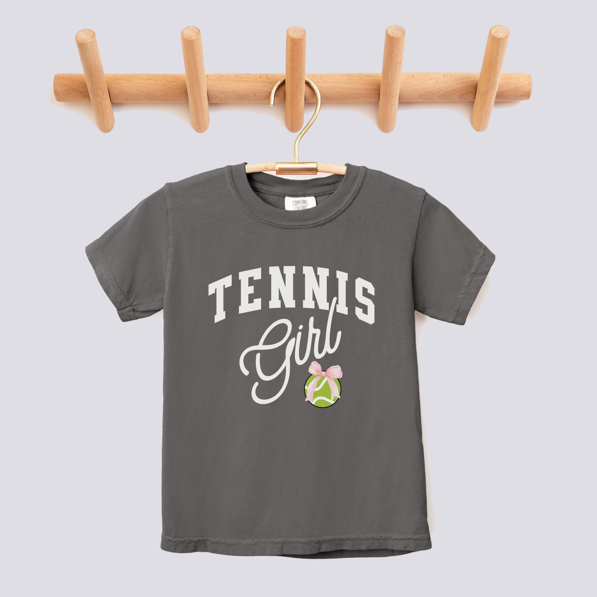 Retro Tennis Girl Pink Bow Comfort Colors Youth Tee