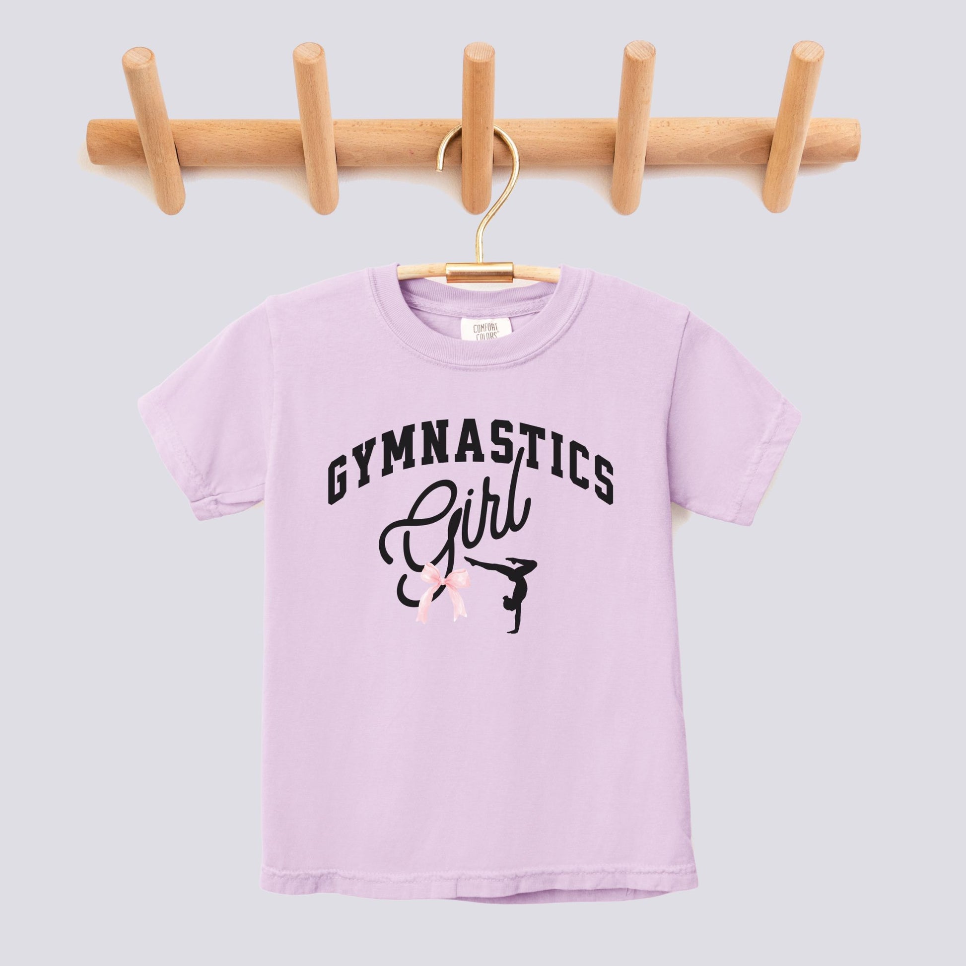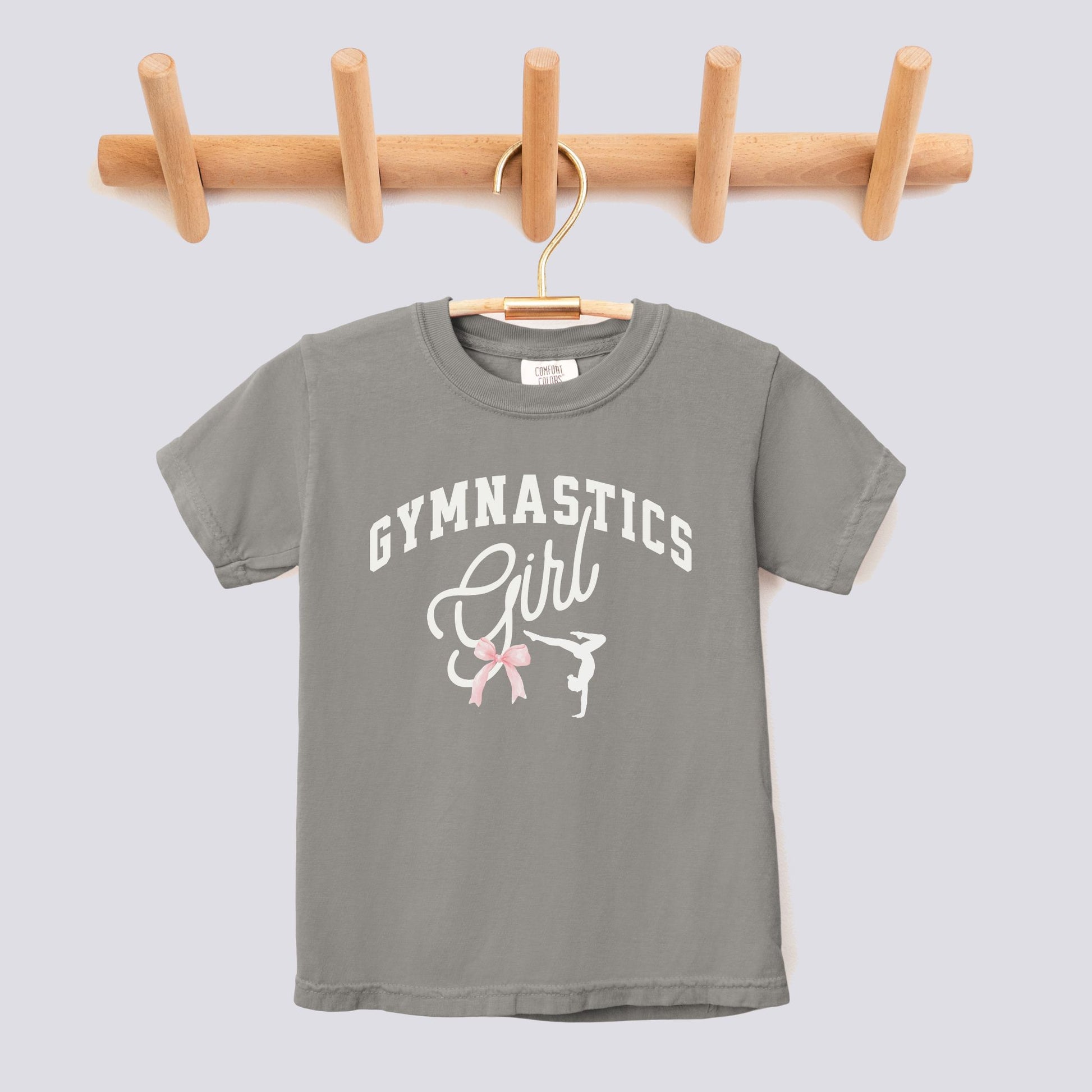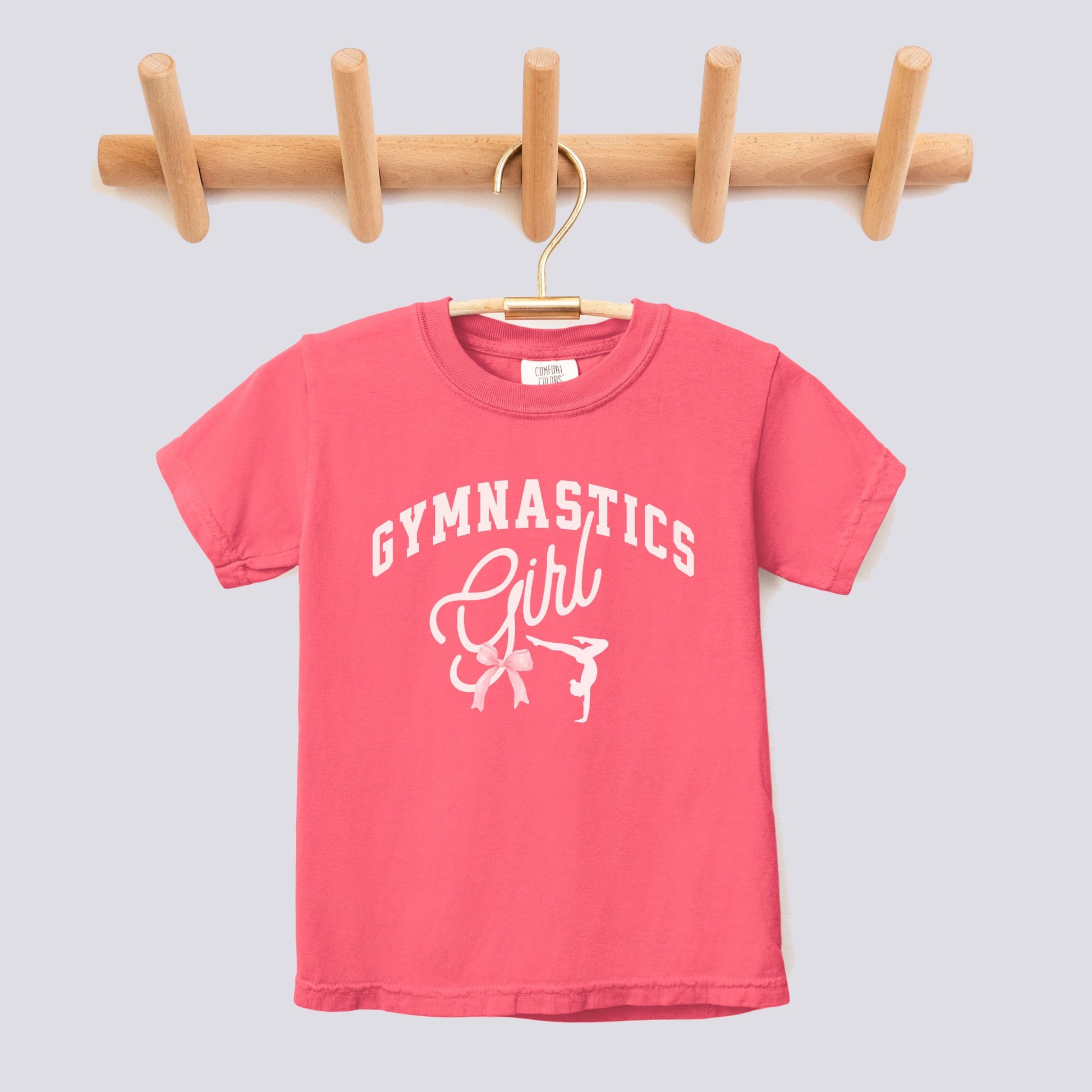 Retro Gymnastics Girl Pink Bow Comfort Colors Youth Tee