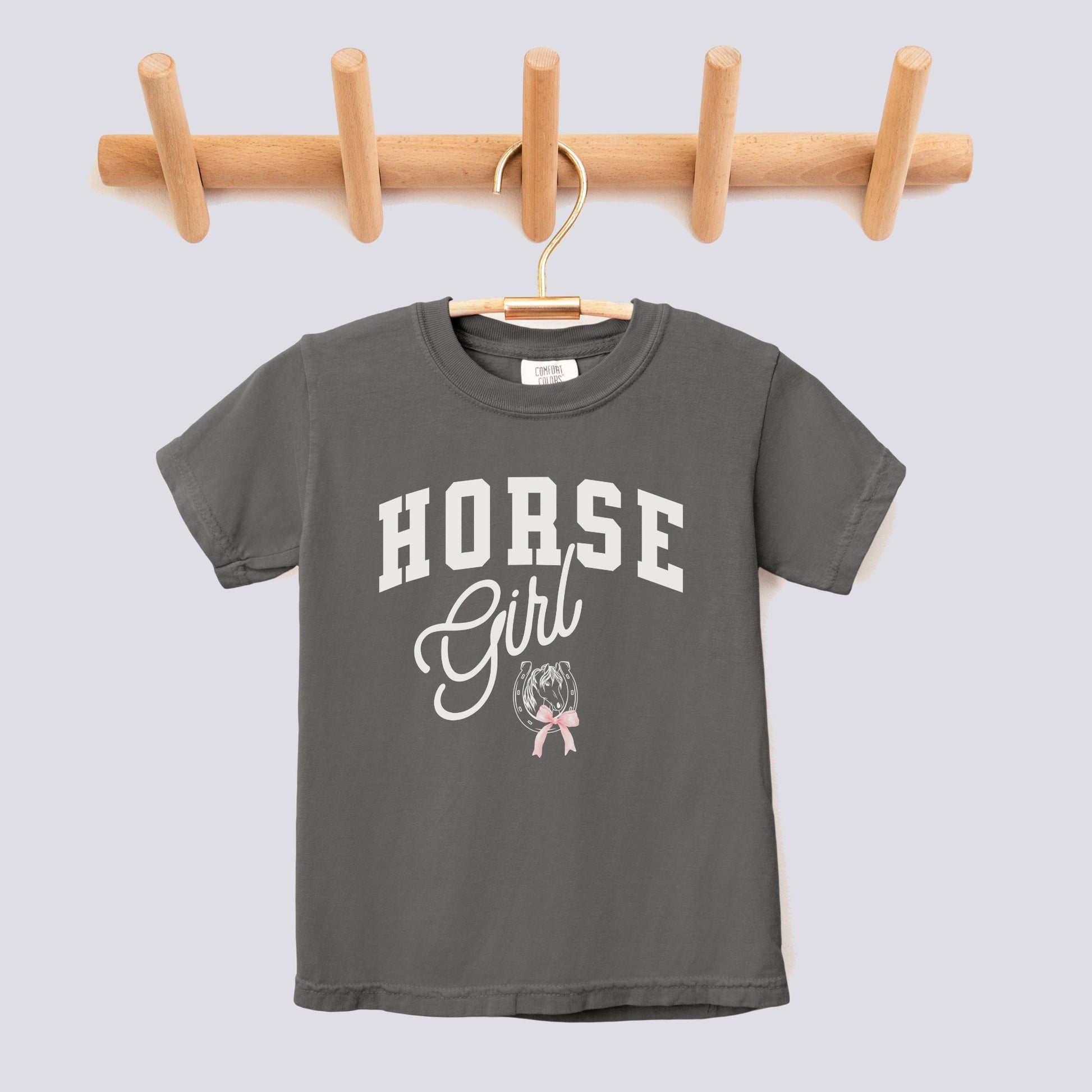 Retro Horse Girl Pink Bow Comfort Colors Youth Tee