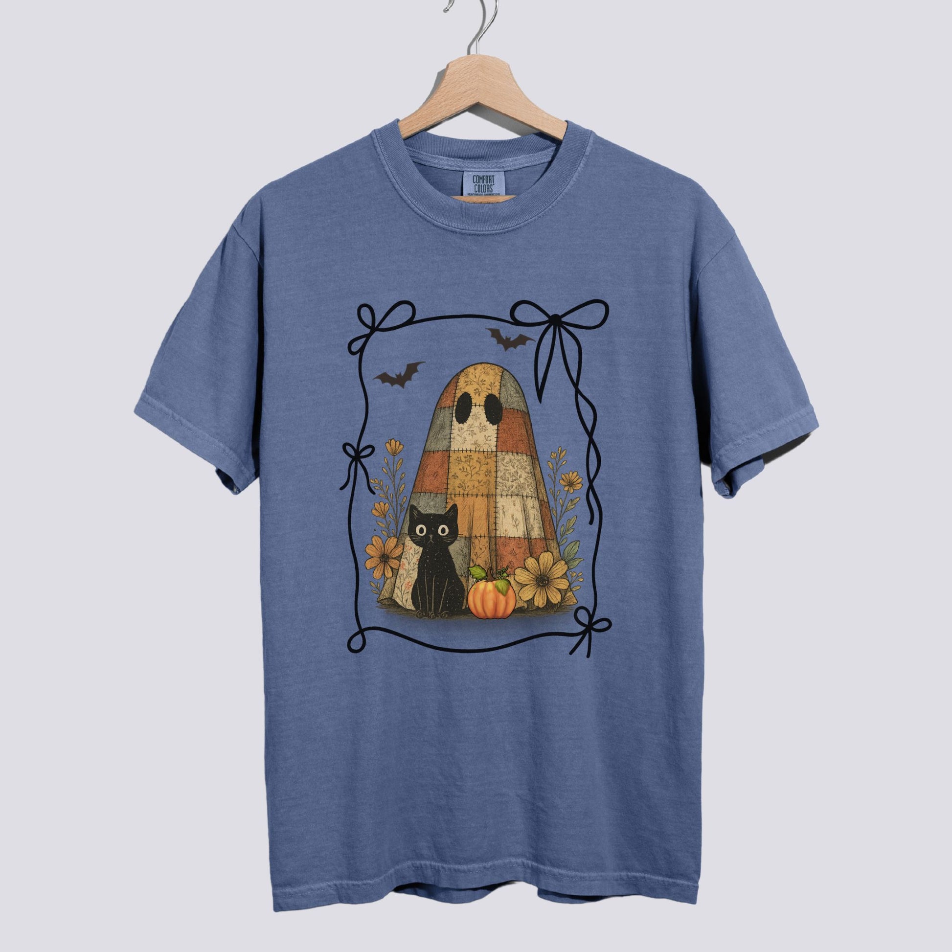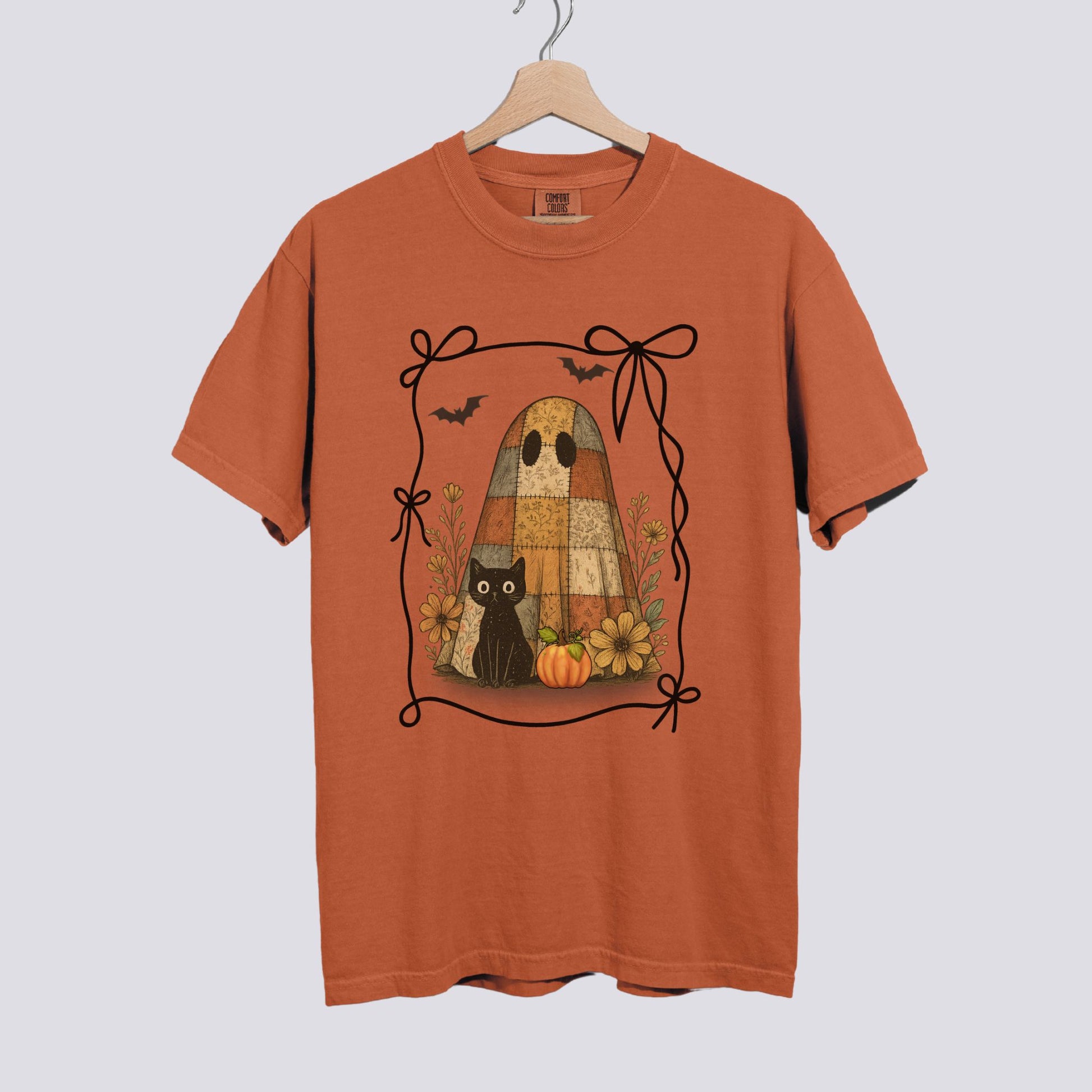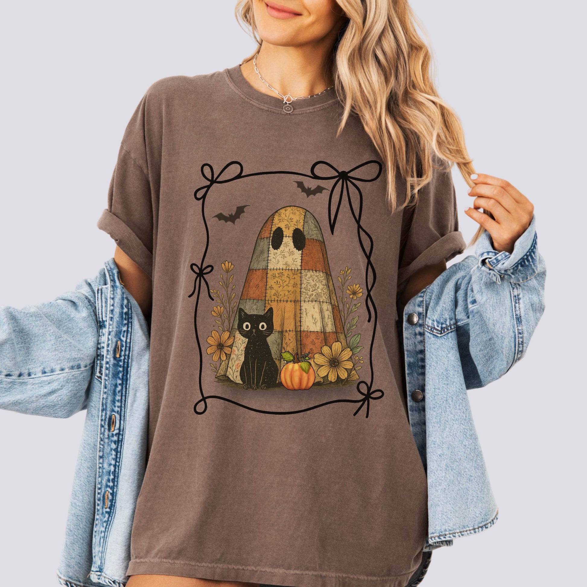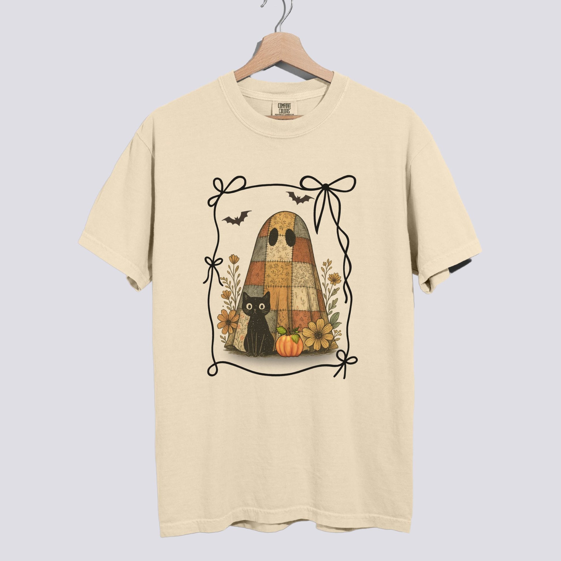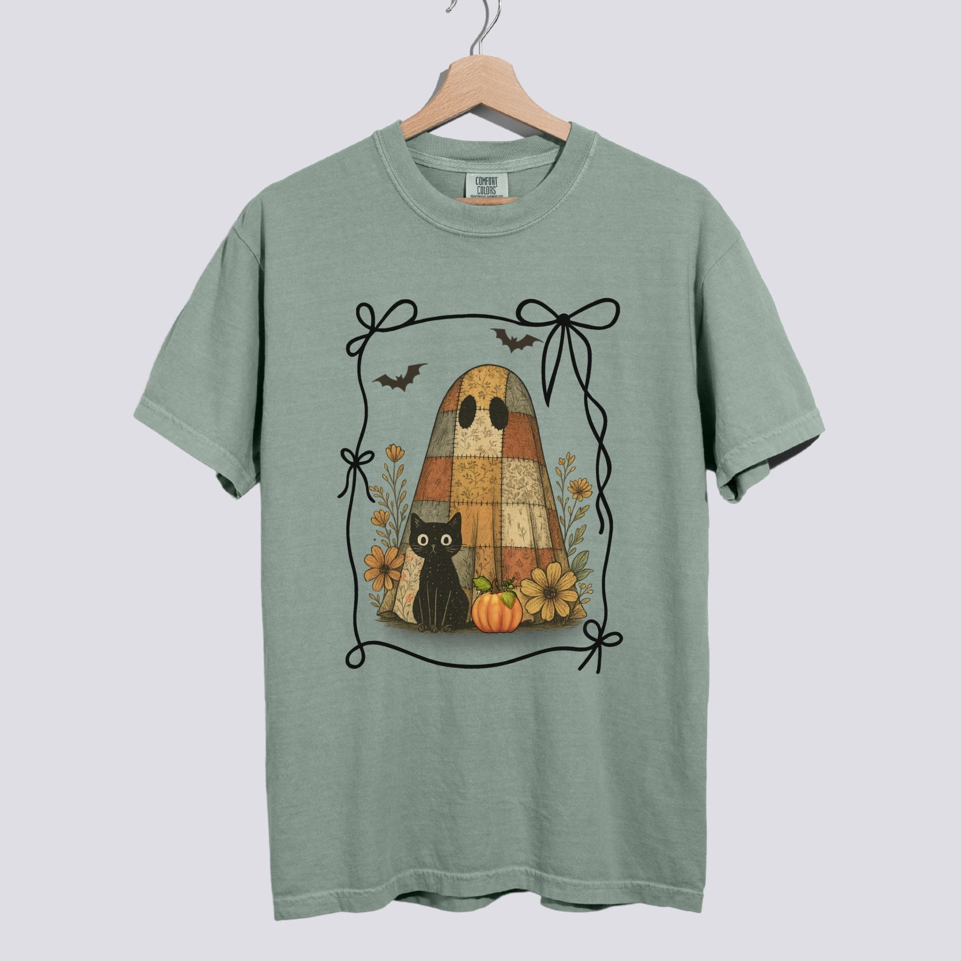 Cute Patchwork Ghost and Cat Comfort Colors Tee