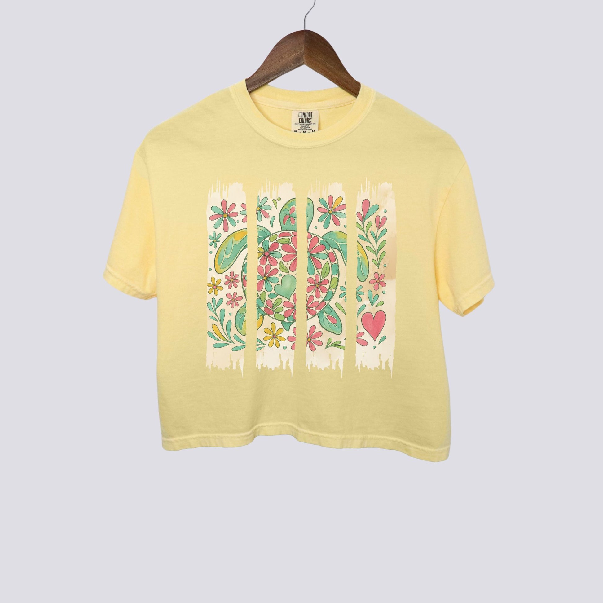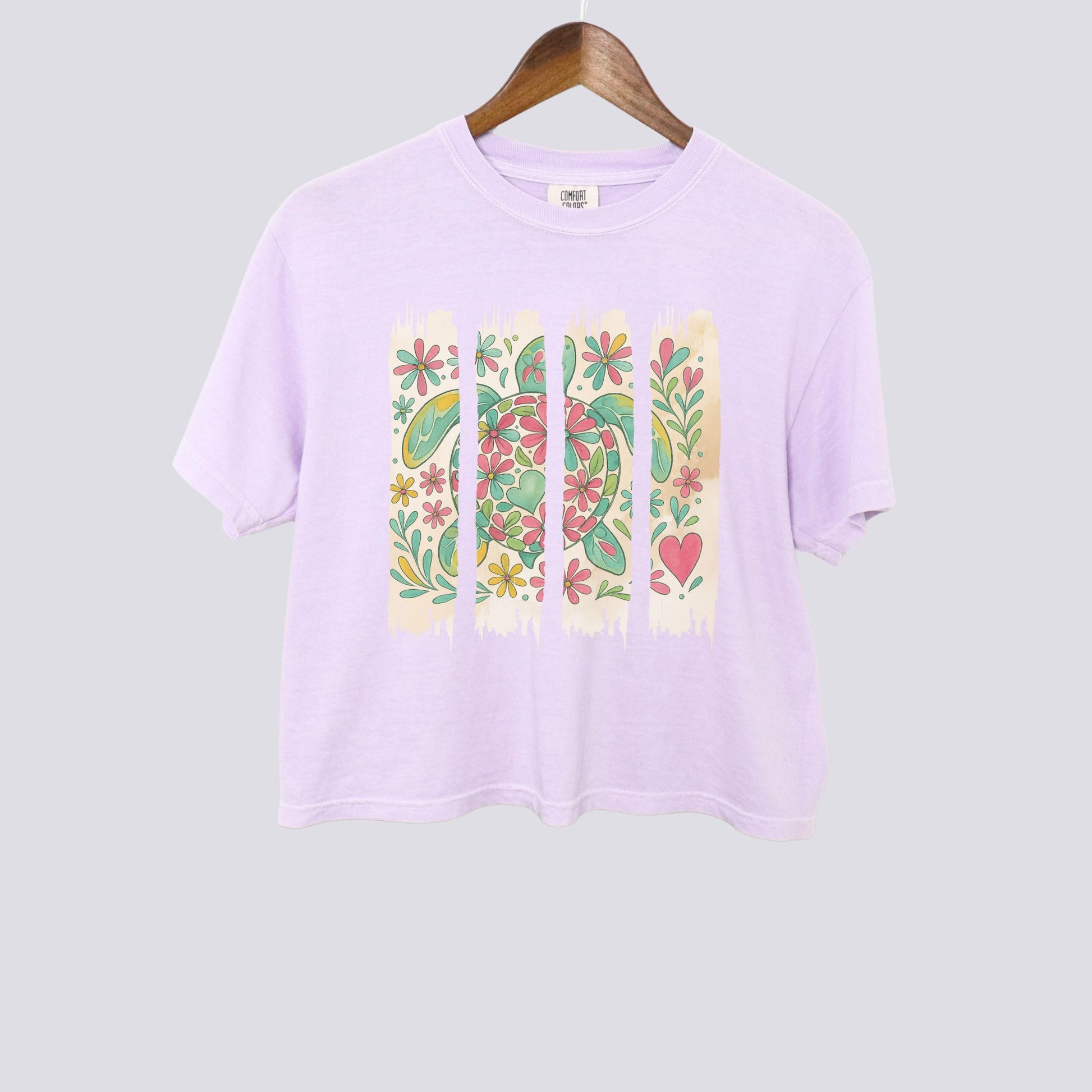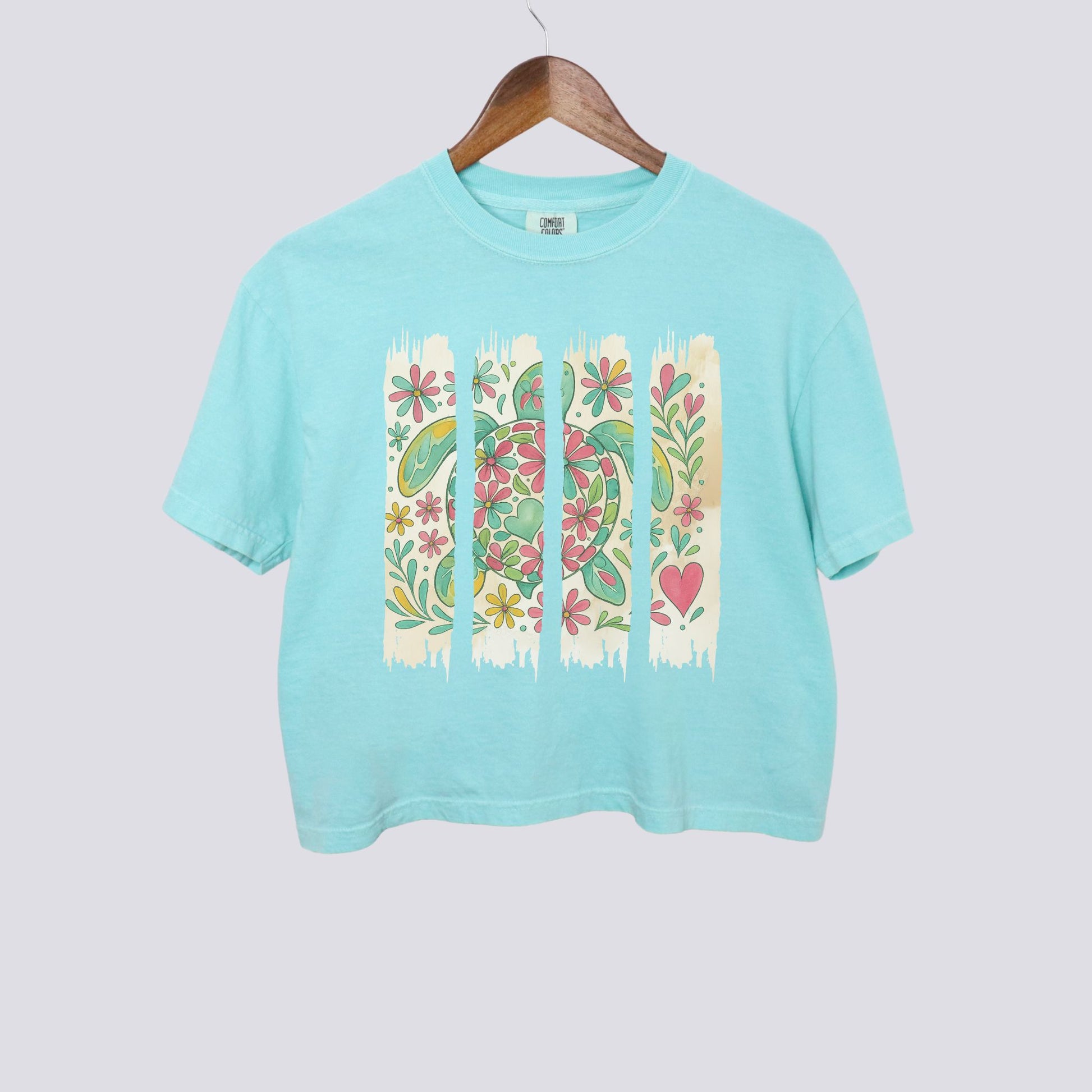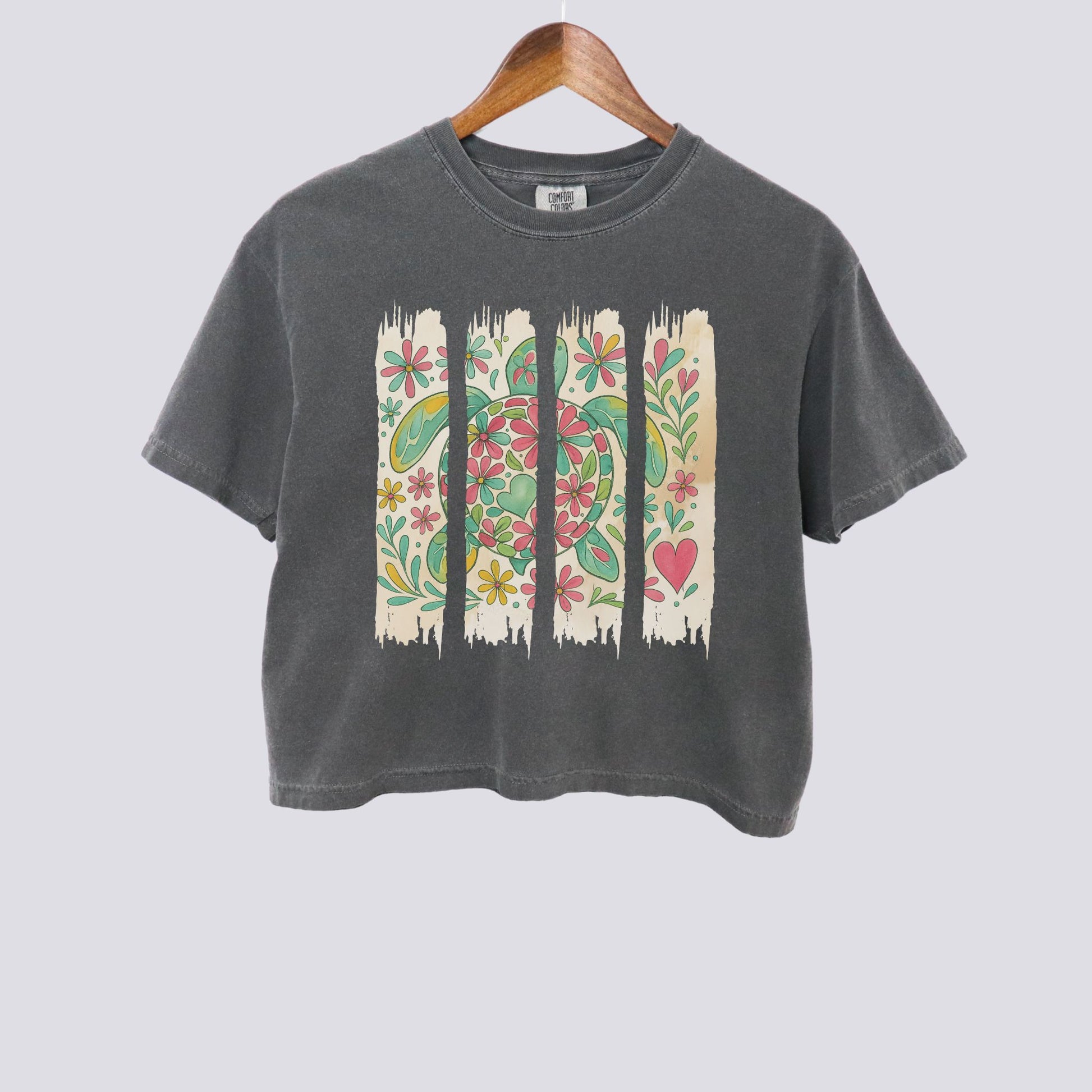 Floral Sea Turtle Brushstroke Comfort Colors Crop Top