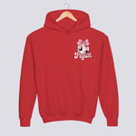 A cozy youth hoodie designed for little athletes with a sweet, playful twist. Crafted from soft, medium-weight fleece, it keeps her warm during practices, school days, and chilly weekends. The roomy kangaroo pocket is perfect for warming cold hands or holding small essentials on the go.