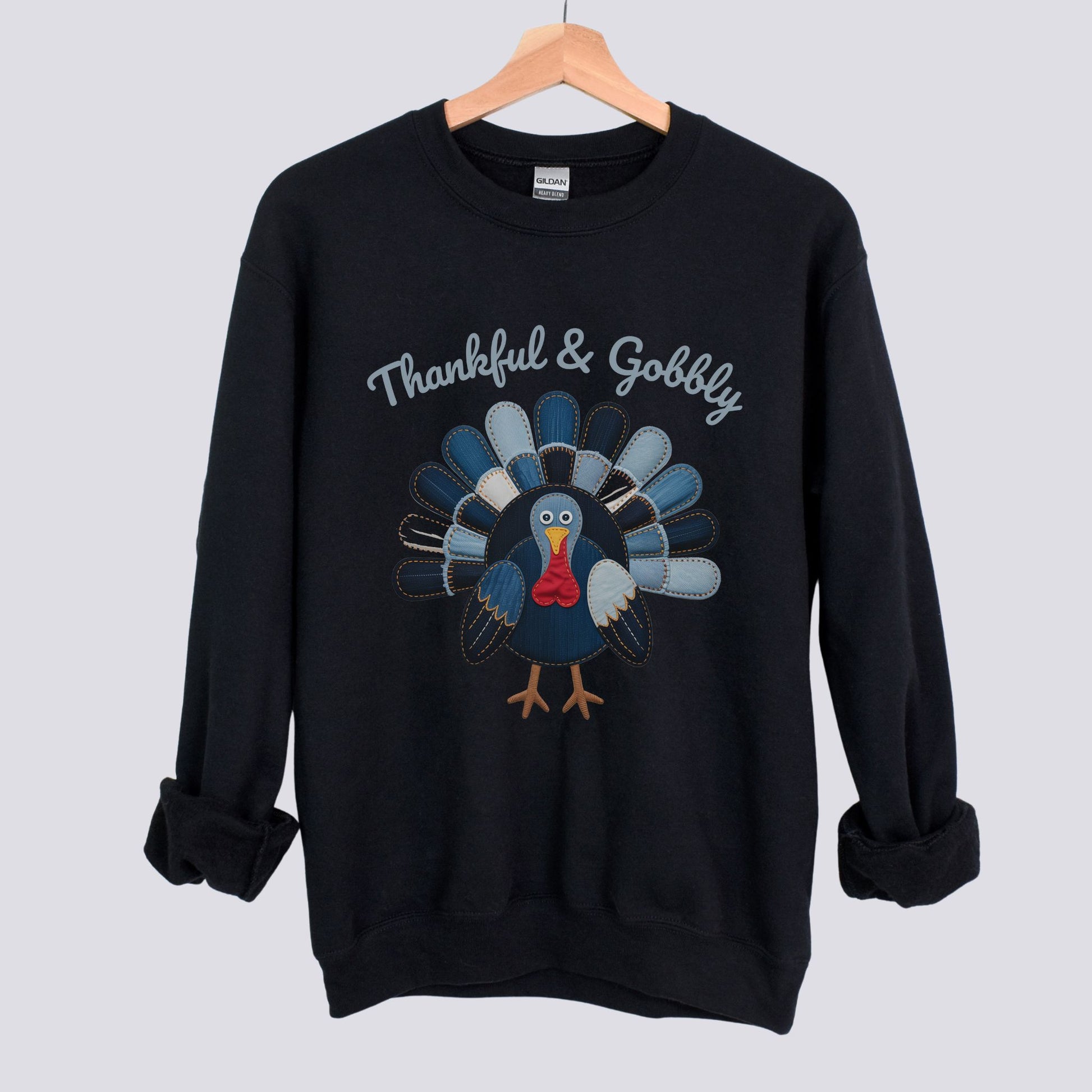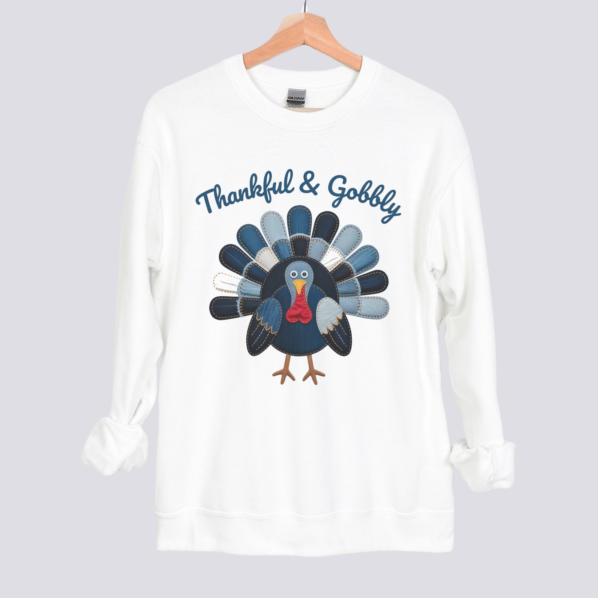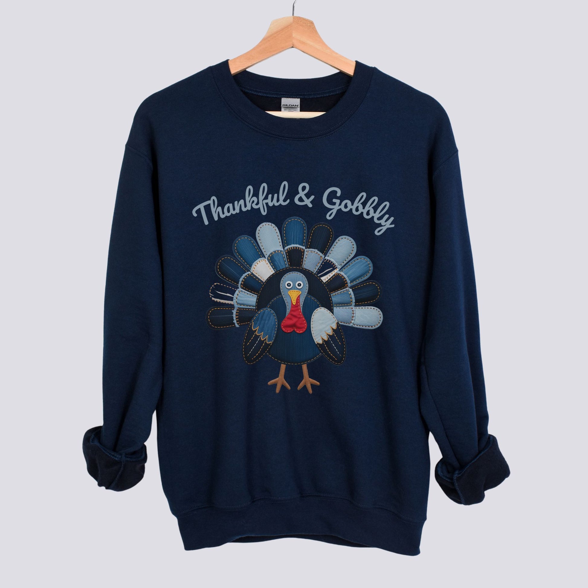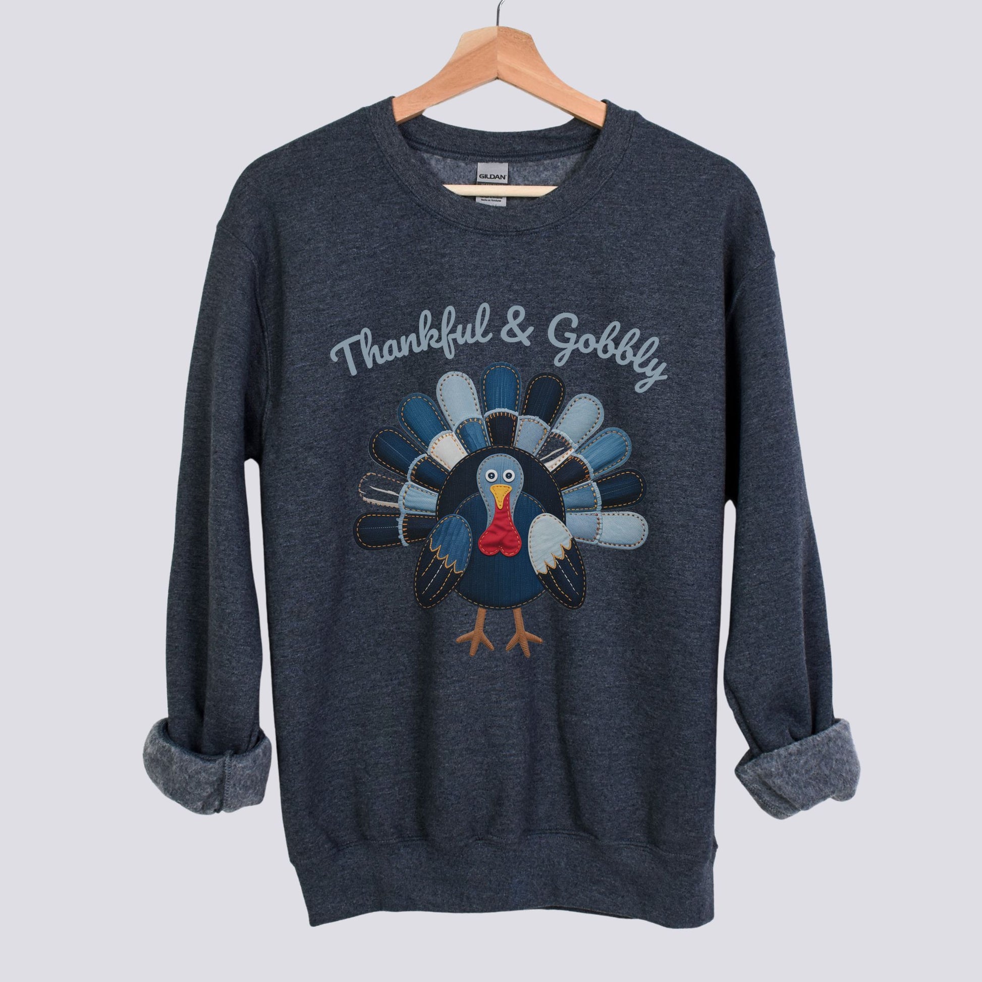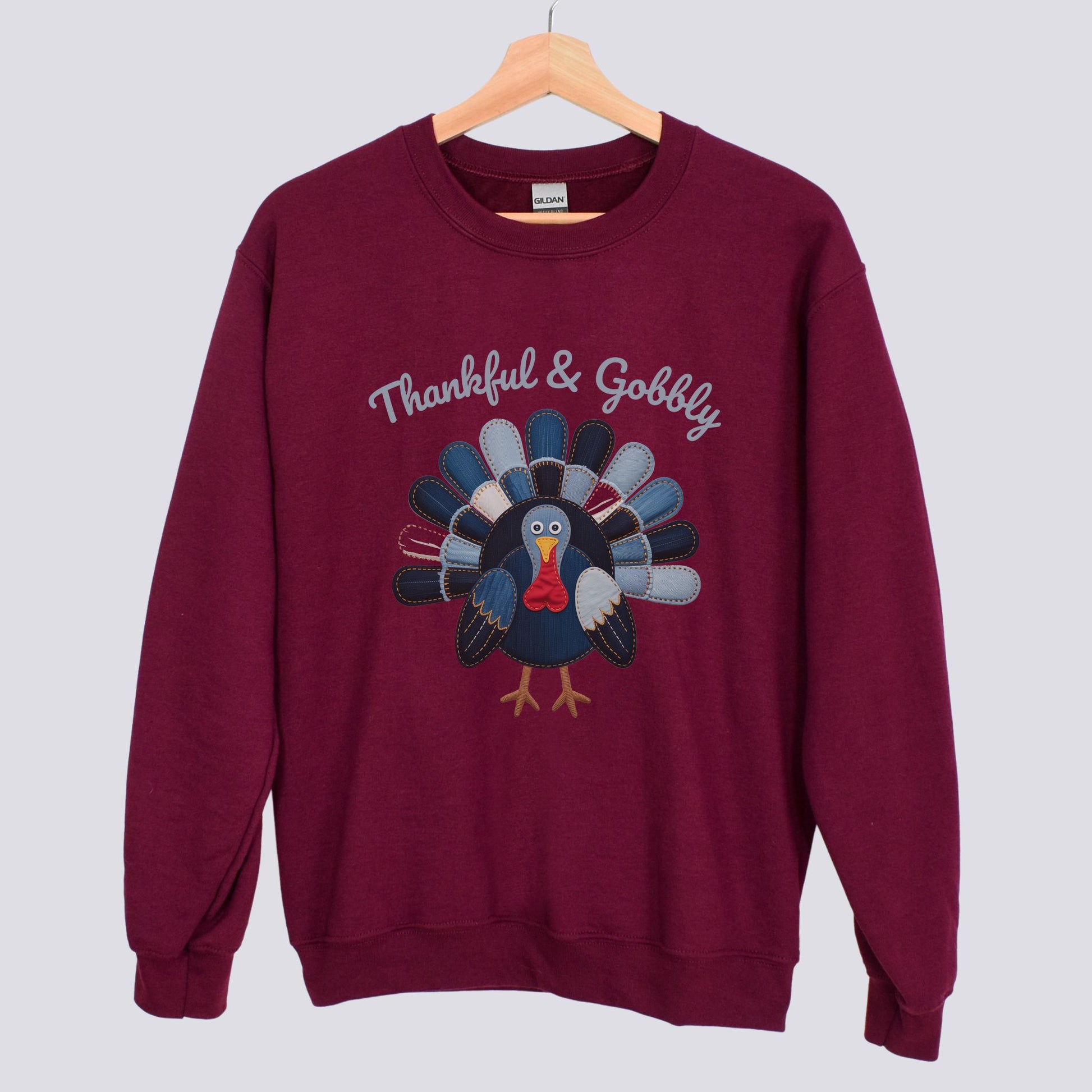 Thankful and Gobbly Patchwork Turkey Sweatshirt